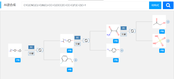 5.AI逆合成:平台融合了AI技术、大数据技术、机器学习与化学反应机理等前沿技术,分析了500余万个化学反应,能够为复杂的分子提供多条相对合理的合成路径。用户可以根据自己的需求选择合适的合成方案,加快了实验合成过程。