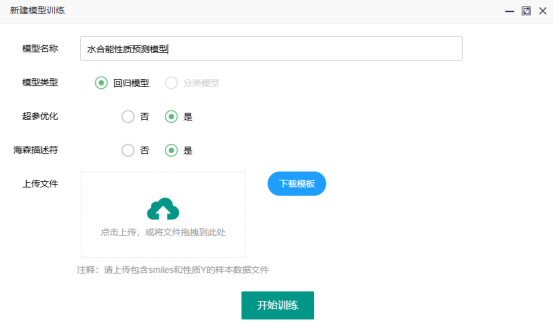 2.材料模型构建:提供了可视化、零门槛的材料模型构建功能。用户只需提供相关数据,平台将自动优选算法和参数,帮助用户轻松训练出高精度材料性质模型。这一功能让更多非AI专业用户也能训练出高质量材料模型,共同推动材料科学的进步。