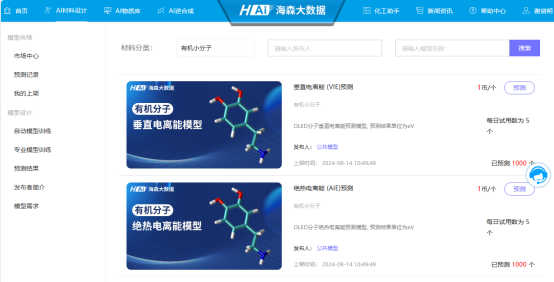4.AI物质库:作为国内收录最全面、性质最丰富的化合物数据库,AI物质库收录了全球99%已发布的有机化合物。平台还补全并扩充了50亿项计算性质和3000亿描述符,为材料研发提供了强大的数据支撑。支持多种检索方式,包含丰富的物质性质信息,让每一次查询都成为发现之旅。